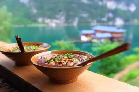 黔江雞雜,青菜牛肉,香草粑,馬打滾,油錢粑粑,渣海椒,綠豆粉、血粑豆腐、糯米莽海椒......無一樣不美味,無一樣不是舌尖誘惑。把身心交付濯水,味蕾得到極大的滿足感,